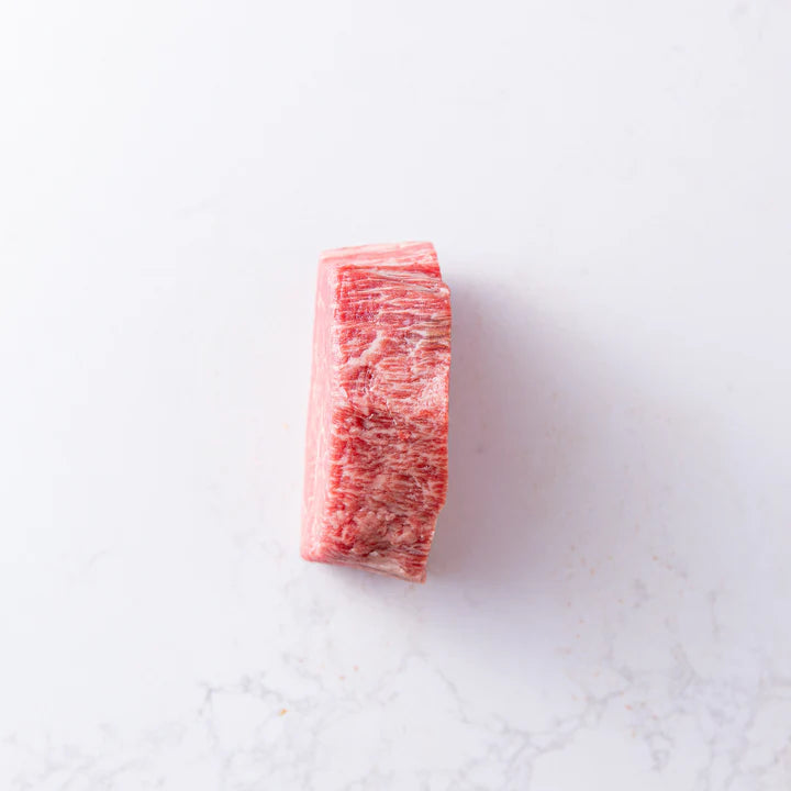 Representing the pinnacle of culinary excellence, our A5 Wagyu tenderloin holds Japan’s highest beef rating- a distinction reserved for the rarest and most exquisite cuts. With unrivaled intramuscular marbling that melts into the steak as it sears, a vibrant, rich hue, and tenderness beyond compare, this extraordinary cut delivers a filet mignon experience unlike any other.